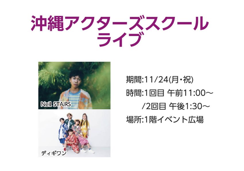 ★沖縄アクターズスクールライブ・【1回目】開演:11時~・【2回目】開演:13時30分~・会場=イオン南風原店1階 イベント広場