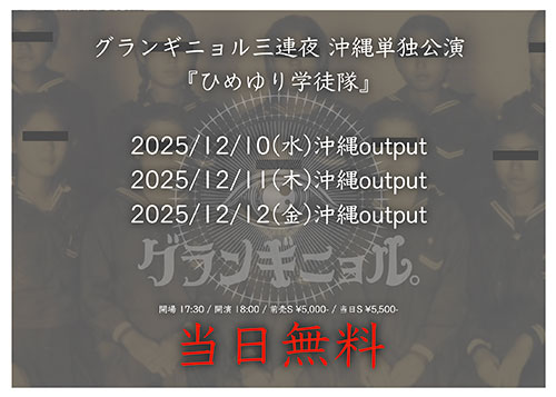 ★グランギニョル三連夜 沖縄単独公演 『ひめゆり学徒隊』第一夜・開場:13時30分/開演:14時・出演=グランギニョル・会場=ライブハウスoutput