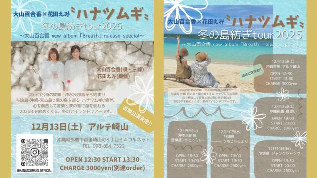 ★『冬の島紡ぎtour2025』〜大山百合香 new album「Breath」release special〜・開場:12時30分/開演:13時30分・出演=大山百合香×花田えみ〝ハナツムギ〟・会場=アルテ崎山