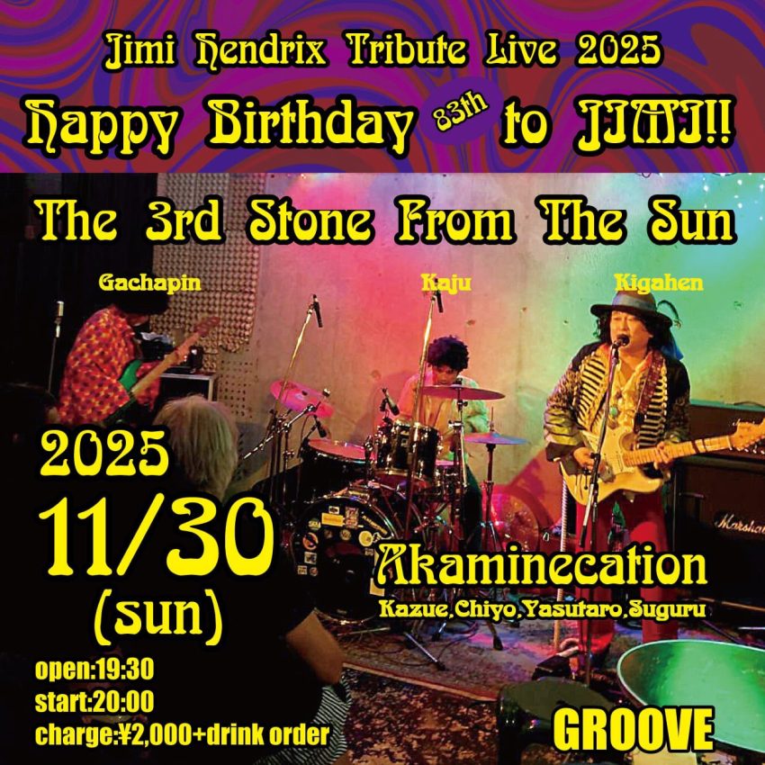 ★ジミ・ヘンドリックス トリビュートライヴ ハッピーバースデー ジミ!・21時30分~23時30分・出演=Kiga Hendrix 、城間和広 、gacha・会場=groove