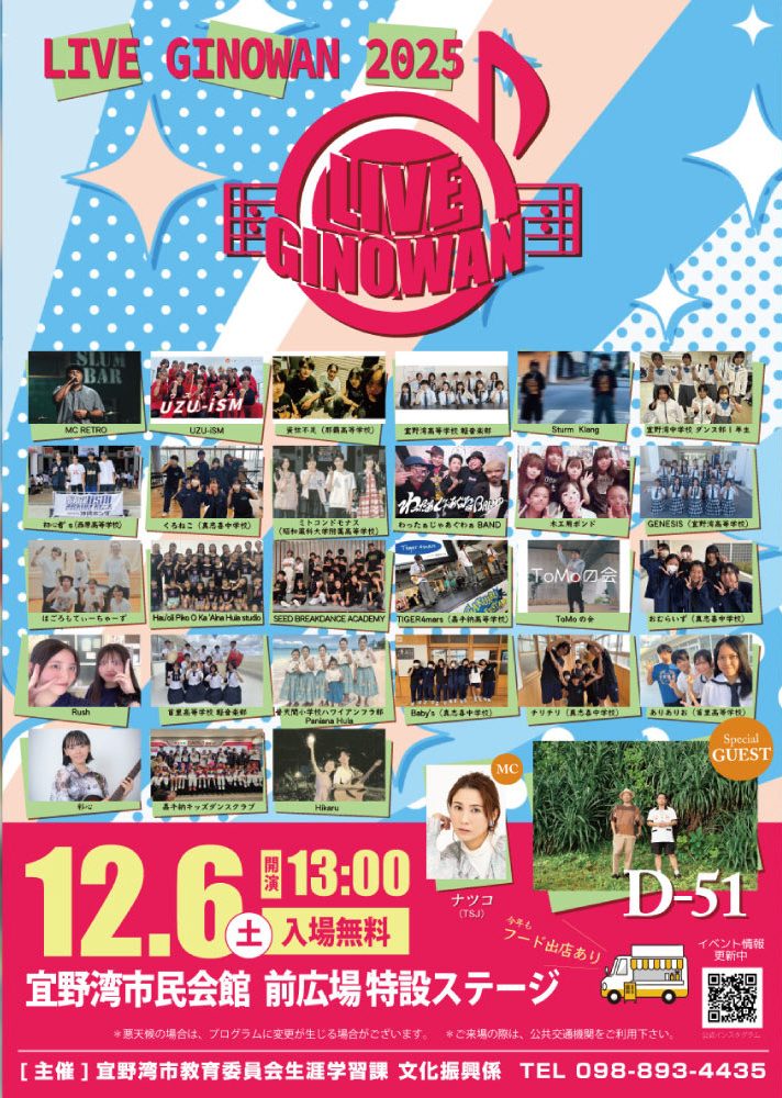 ★LIVE GINOWAN 2025・開演:13時~・会場=宜野湾市民会館 前広場