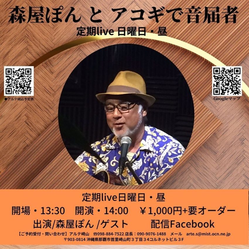 ★森屋ぽん と アコギで音届者・開場:13時/開演:13時30分・出演=森屋ぽん・会場=アルテ崎山