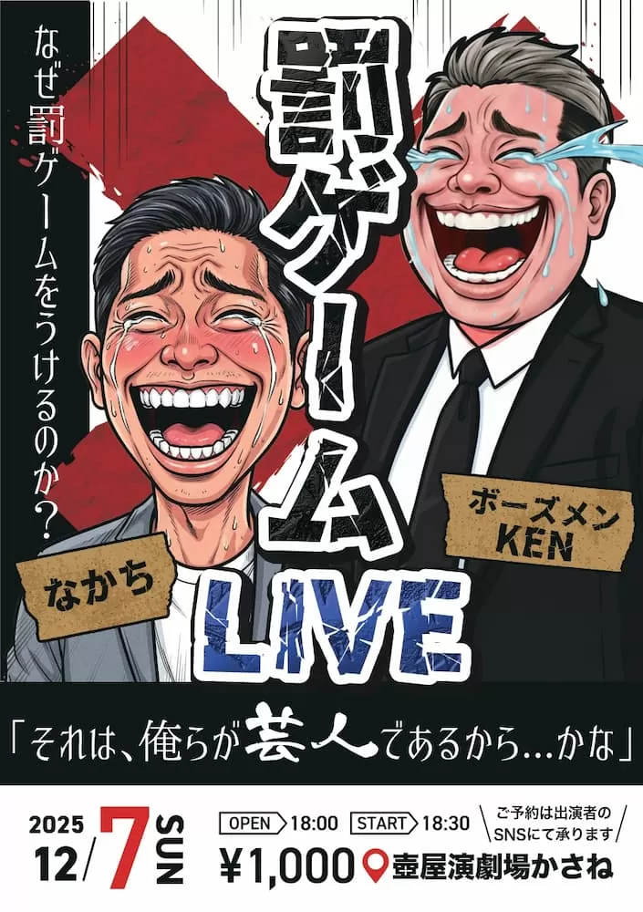 ★罰ゲーム LIVE・開場:18時/開演:18時30分・出演=なかち、ボーズメン KEN・会場=壺屋演劇場かさね