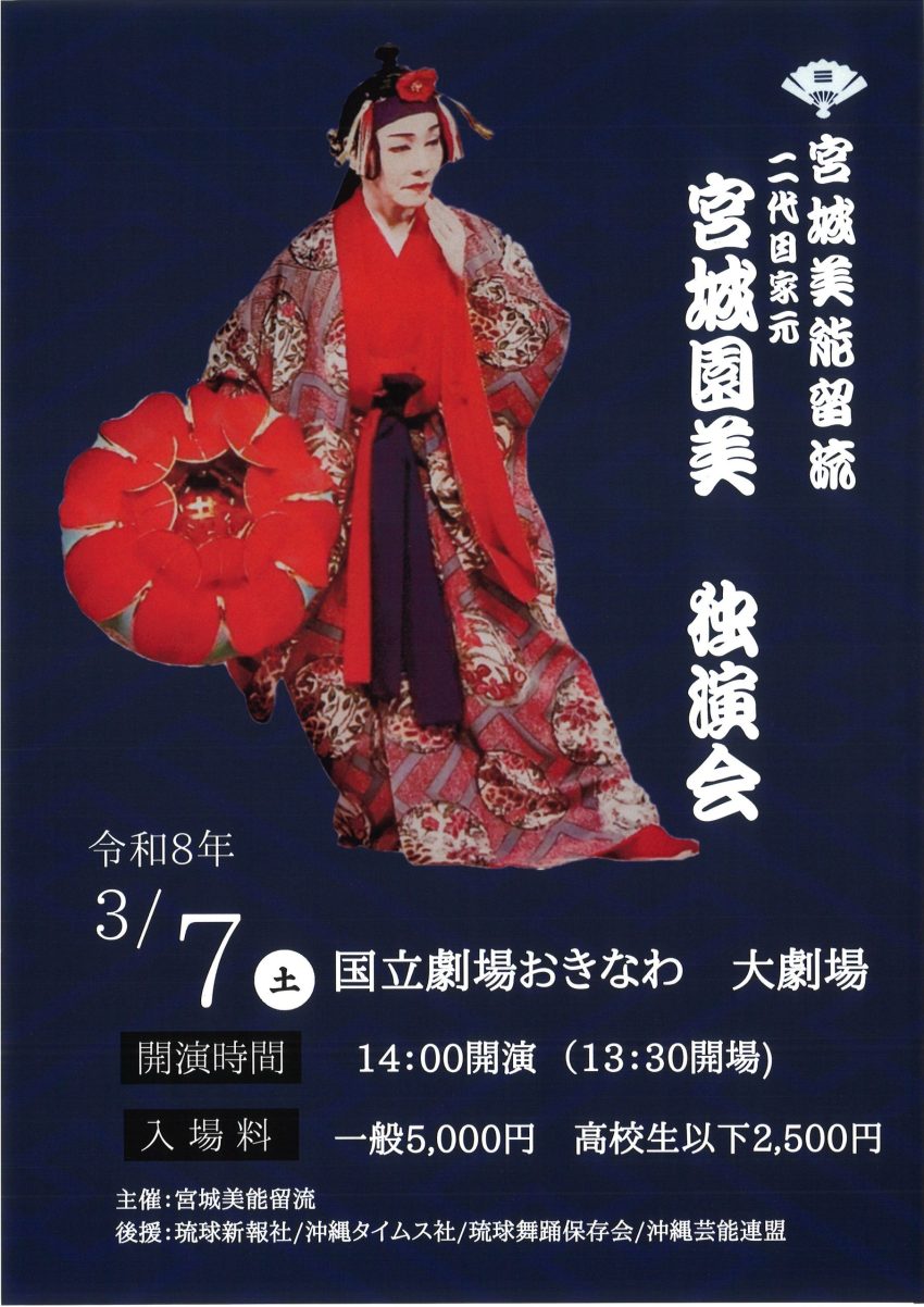 ★宮城美能留流 二代目家元 宮城園美 独演会・開場:13時30分/開演:14時・会場=国立劇場おきなわ・大劇場