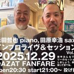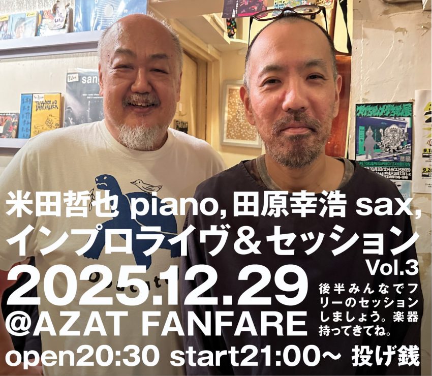 ★米田哲也 piano、田原幸浩sax インプロライヴ&セッション Vol.3・開場:20時30分/開演:21時・会場=AZAT FANFARE