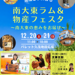 ★南大東ラム&物産フェスタ・11時~18時・出演=11時:大東太鼓・15時:大東人・司会:吉澤直美・会場=UFURUFU(パレットくもじ前交通広場)