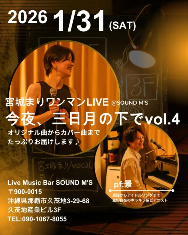 ★宮城まり ワンマンLIVE・開場:18時30分/開演:19時・MEMBER=宮城まり(vo)/景(pf)・会場=Live Music Bar SOUND M’S