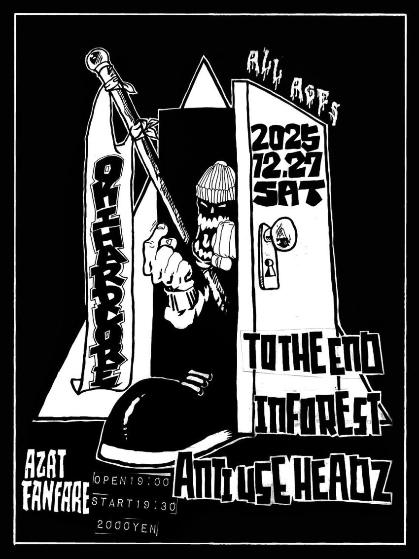 ★OKIHARDCORE・開場:19時/開演:19時30分・act:TO THE END、INFOREST、UNTI USE HEADZ・会場=AZAT FANFARE
