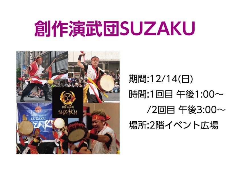 ★創作演武団 SUZAKU・【1回目】開演:13時~・【2回目】開演:15時~・会場=イオン具志川店・2階イベント広場