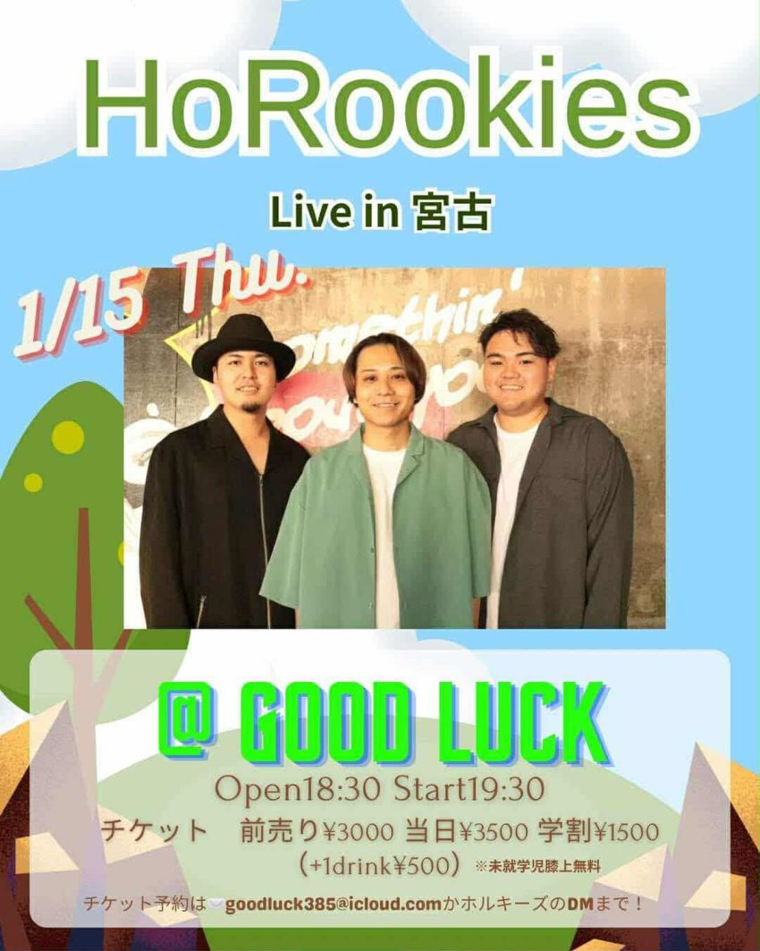 ★HoRookies LIVE in 宮古島・開場:18時30分/開演:19時30分・会場=GOOD LUCK・宮古島市