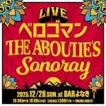 ★ベロゴマン THE ABOUTIE’S Sonoray・開場:18時30分/開演:19時DJ:Rockin’港川人・会場=BAR よなき(那覇市前島2-13-19)