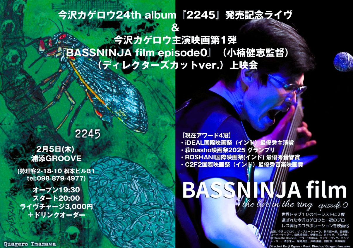 ★今沢カゲロウ24th album『2245』 発売記念ライヴ& 主演映画第1弾 『BASSNINJA film episode0』 (小楠健志監督)ディレクターズカット上映会・開場:19時30分/開演:20時・会場=groove