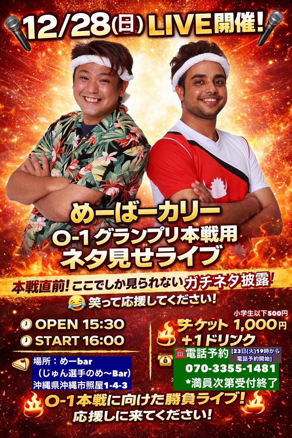 ★めーばーカリー O-1グランプリ本戦用ネタ見せライブ・開場:15時30分/開演:16時・会場=めーbar (じゅん選手のめ~Bar) 沖縄市照屋1-4-3
