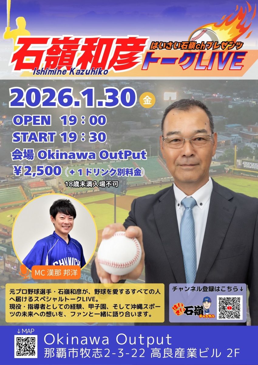 ★はいさい石嶺CHプレゼンツ・石嶺和彦トーク LIVE・開場:19時/開演:19時30分・MC:漢那邦洋・会場=ライブハウスoutput