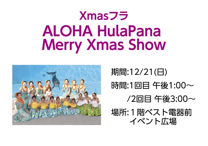 ★Xmasフラ ALOHA HulaPana Merry Xmas Show・【1回目】開演:13時・【2回目】開演:15時・会場=イオン名護店1階ベスト電器前イベント広場