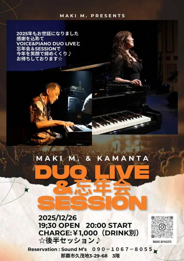 ★DUO LIVE&忘年会SESSION・開場:19時30分/開演:20時・MEMBER=maki miyasato(vo)/カマンタ(pf)・会場=Live Music Bar SOUND M’S