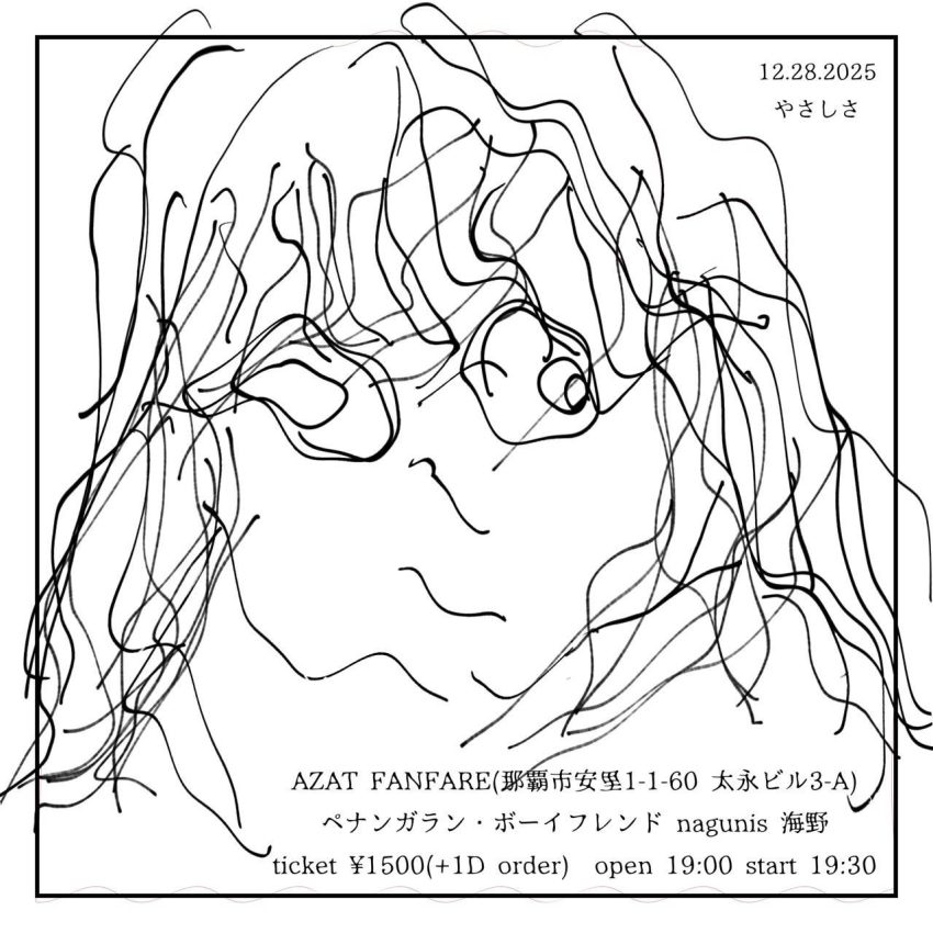 ★やさしさ・開場:19時/開演:19時30分・出演=ペナンガラン·ボーイフレンド、nagunis、海野・会場=AZAT FANFARE