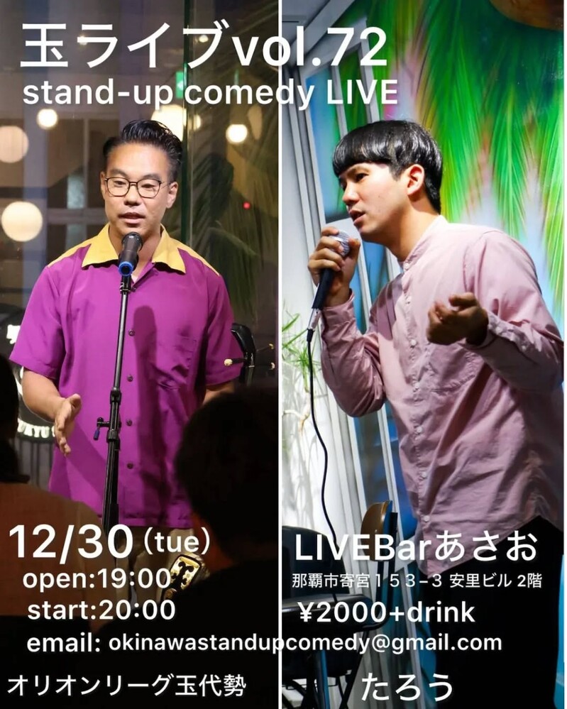 ★玉ライブ Vol,72・開場:19時/開演:20時・出演=玉代勢直(オリオンリーグ)、たろう・会場=LIVE BAR あさお