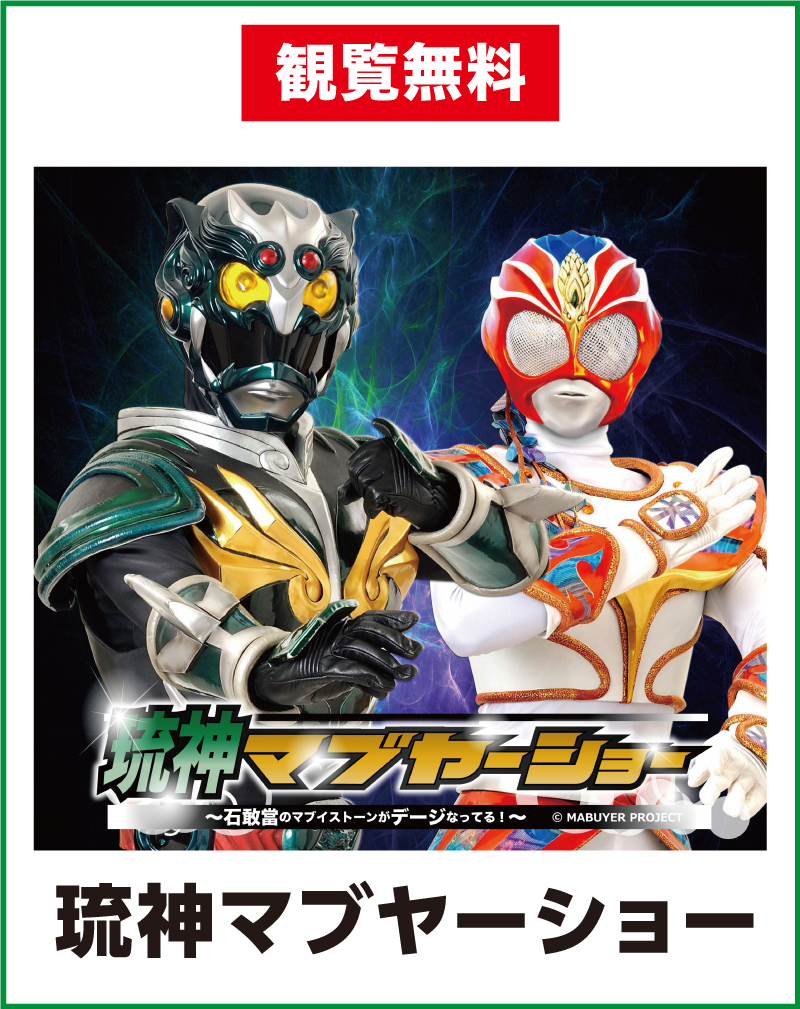 ★琉神マブヤーショー・開演:11時・会場=サンエー西原シティ(1Fエディオン側コート)・開演:13時30分・会場=サンエー宜野湾コンベンションシティ(2Fはごろもコート)・開演:17時・会場=サンエーしおざきシティ(1Fエデイオン側イベント広場)