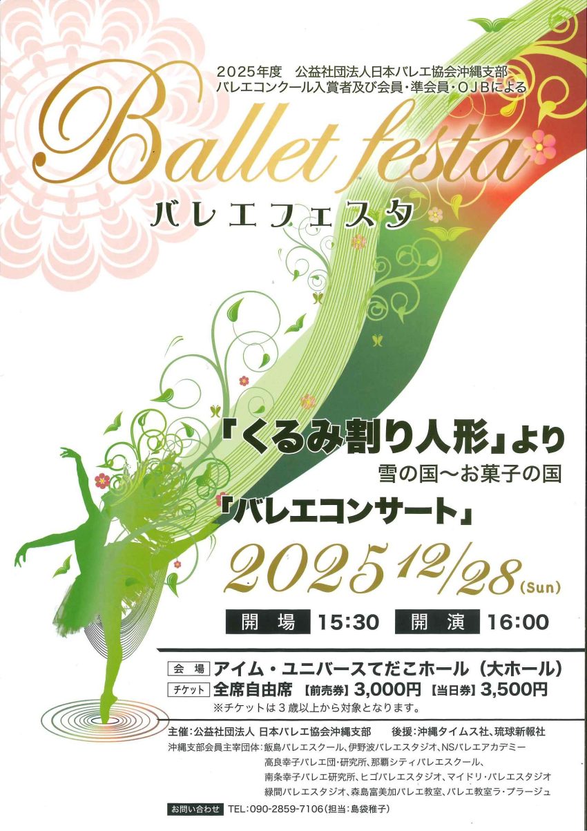 ★「くるみ割り人形」より雪の国~お菓子の国「バレエコンサート」・開場:15時30分/開演:16時・会場=アイム・ユニバースてだこホール・大ホール