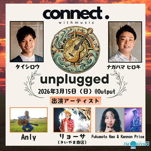 ★アンプラグド・開場:16時30分/開演:17時・出演=MC:タイシロウ、ナガハマヒロキ・アーティスト:Anly、リョーサ(きいやま商店)、Fukumoto Nao & Kannon Price・会場=ライブハウスoutput