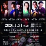 イベントのタイトル、日にち、開場時間、開演時間、出演者、会場、最後にイベントタイトルにリンクするアドレス(ホームページ、X、Instagram等)の順で書いて下さい。