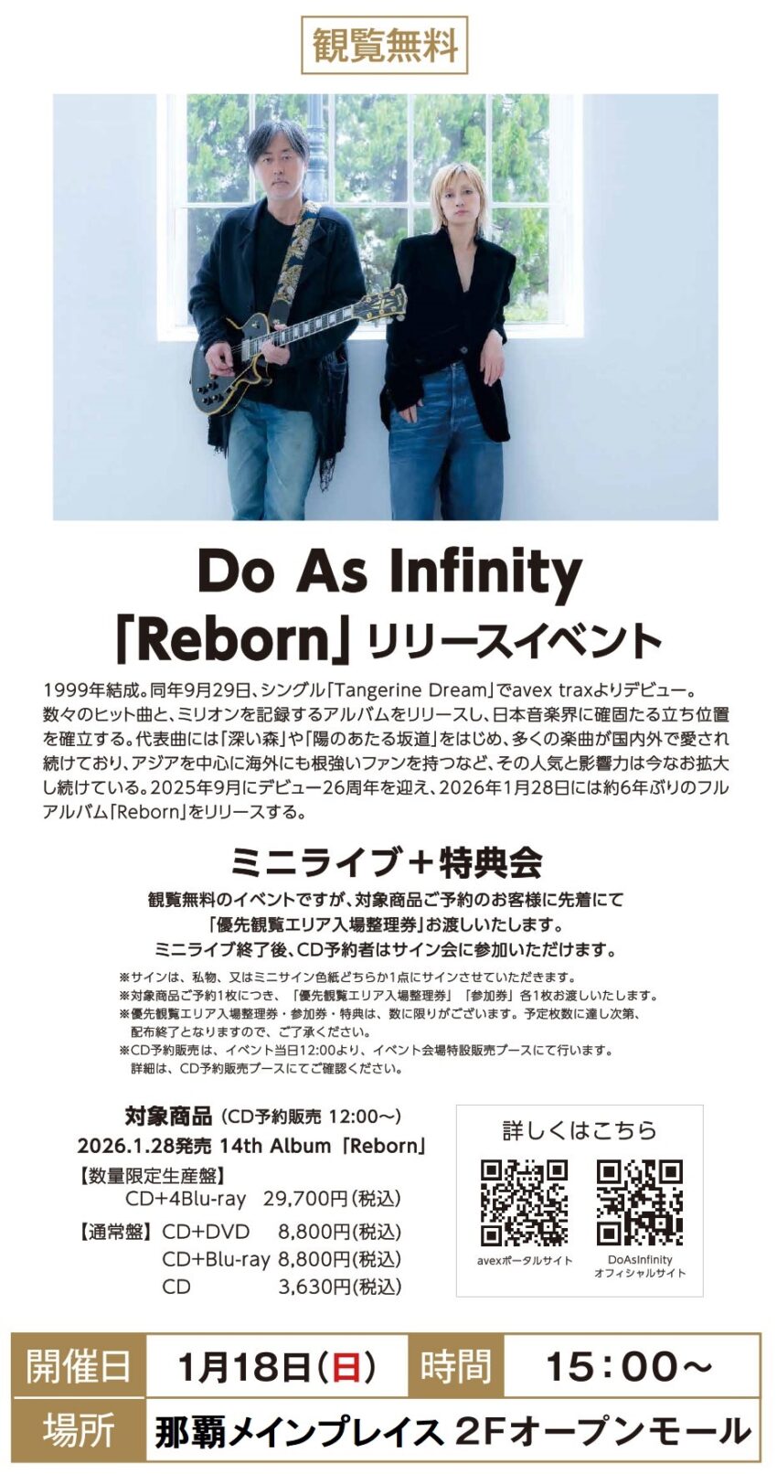 ★Do As Infinity 「Reborn」リリースイベント・開演:15時~・会場=サンエー那覇メインプレイス2階オープンモール