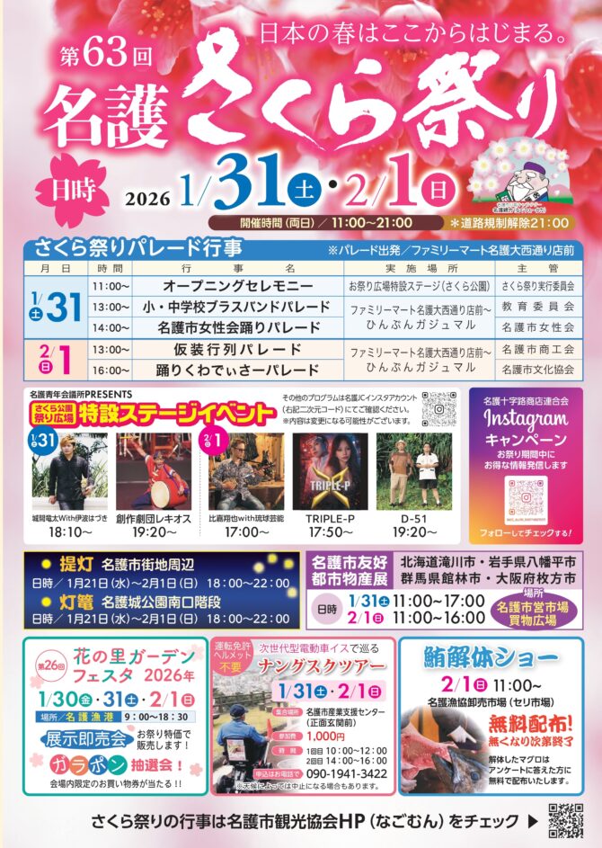★第63回 名護さくら祭・特設ステージイベント・17時~:比嘉翔也with流球芸能・17時50分~:TRIPLE-P・19時20分~:D-51・会場=名護城公園、お祭り広場特設ステージ(さくら公園)
