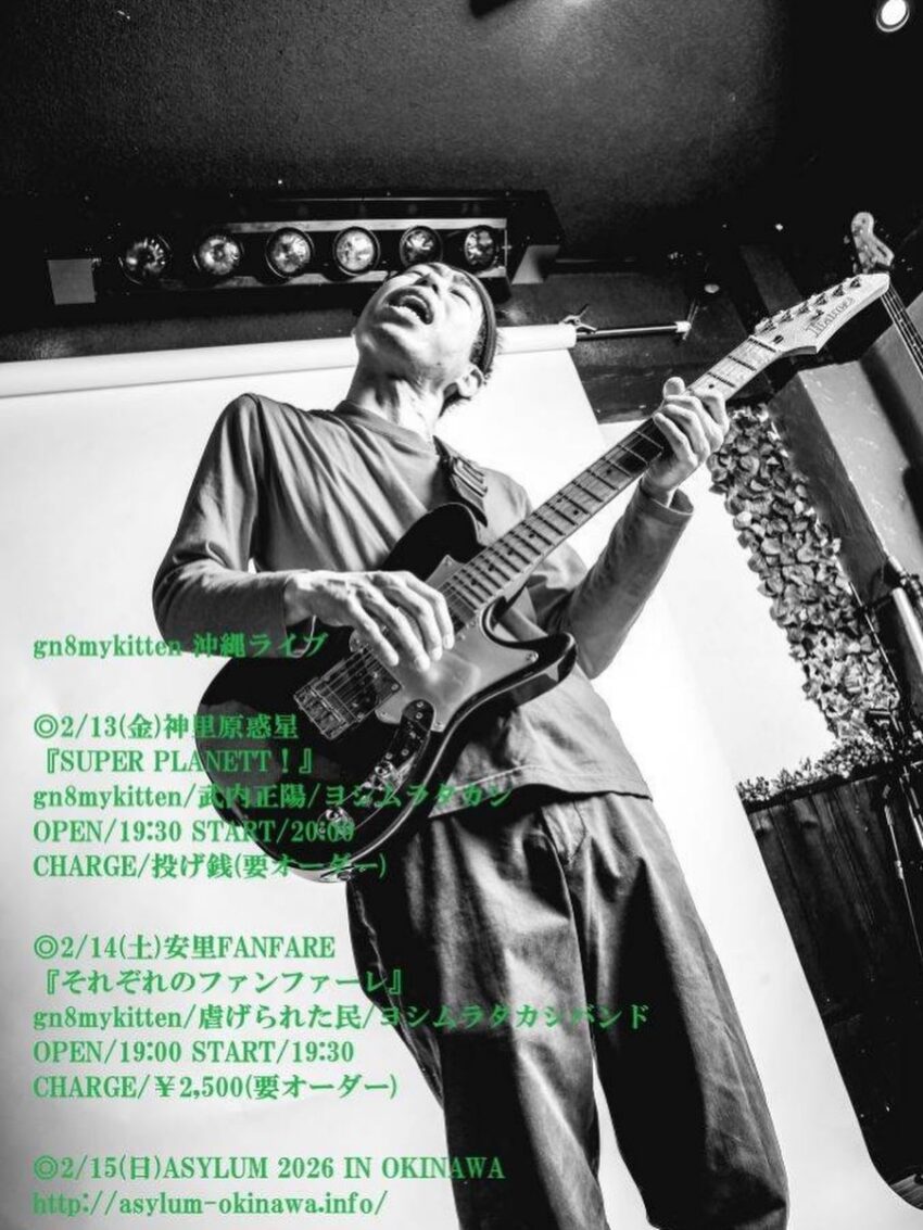 ★gnömykitte 沖縄ライブ『それぞれのファンファー』・開場:19時/開演:19時30分・出演=gn&mykitten/虐げられた民ルラクカジキンド・会場=AZAT FANFARE
