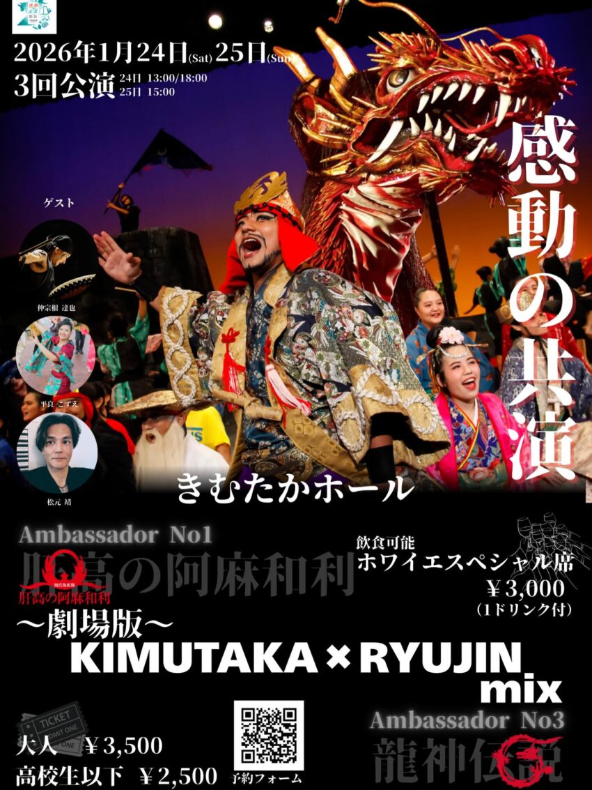 ★~劇場版~ KIMUTAKA * RYUJIN mix・【昼公演】開場:12時30分/開演:13時・【夜公演】開場:17時30分/開演:18時・会場=きむたかホール(うるま市勝連平安名3047番地)