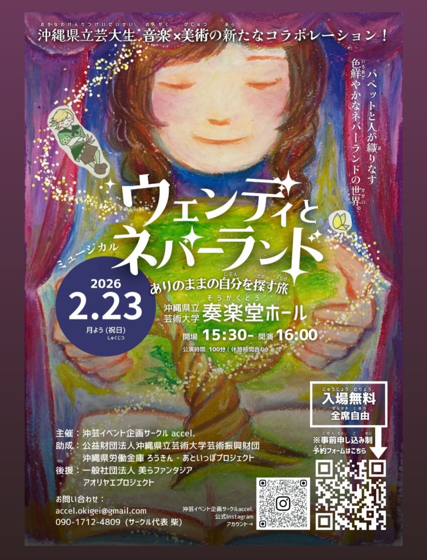 ★ミュージカル ウェンディとネバーランド~ありのまま自分を探す旅~・開場:15時30分/開演:16時・会場=沖縄県立芸術大学奏楽堂ホール(首里当蔵キャンパス)