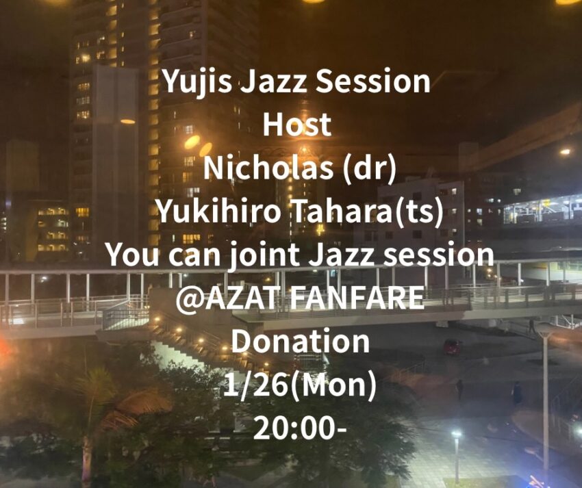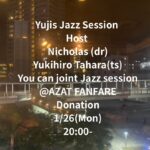 ★Yujis Jazz Session・開演:20時~・Host:Nicholas (dr)、Yukihiro Tahara(ts)・会場=AZAT FANFARE