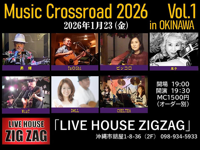 ★県外アーティスト主催ライブ Music Crossroad 2026・開場:19時/開演:19時30分・出演=昇輝、Ta◎Shi、ビッコロ、WizT、D@LL、CHELTEA・会場=ライブハウスZIGZAG