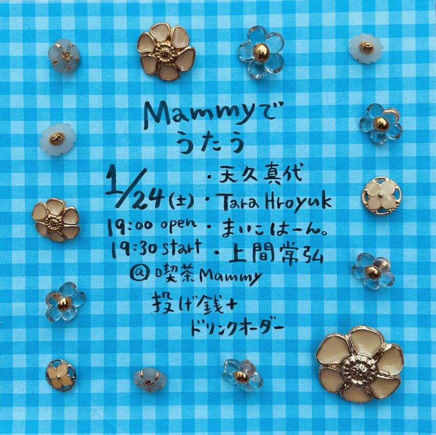 ★Mammyでうたう・開場:19時/開演:19時30分・出演=天久真代、Tara Hroyuk、まいこはーん、上間常弘・会場=喫茶Mammy(那覇市牧志3-9-30)