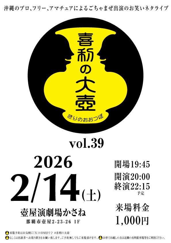 ★ 喜利の大壺vol.39・開場:19時45分/開演:20時~終演:22時15分・会場=壺屋演劇場かさね