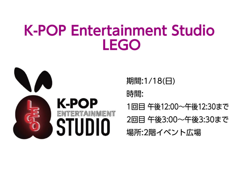 ★K-POP Entertainment Studio LEGO・【1回目】開演:12時~終演:12時30分・【2回目】開演:15時~終演:15時30分・会場=イオン具志川店・2階イベント広場