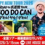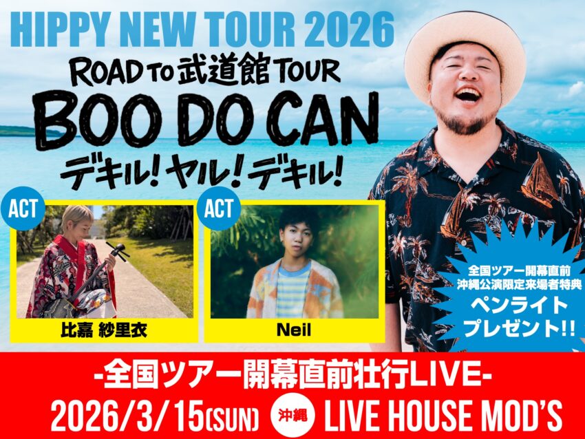 ★ROAD TO 武道館 TOUR “BOO DO CAN” デキル!ヤル!デキル!・開場:15時30分/開演:16時・出演=HIPPY / Neil / 比嘉 紗里衣・会場=LIVE HOUSE MOD’S