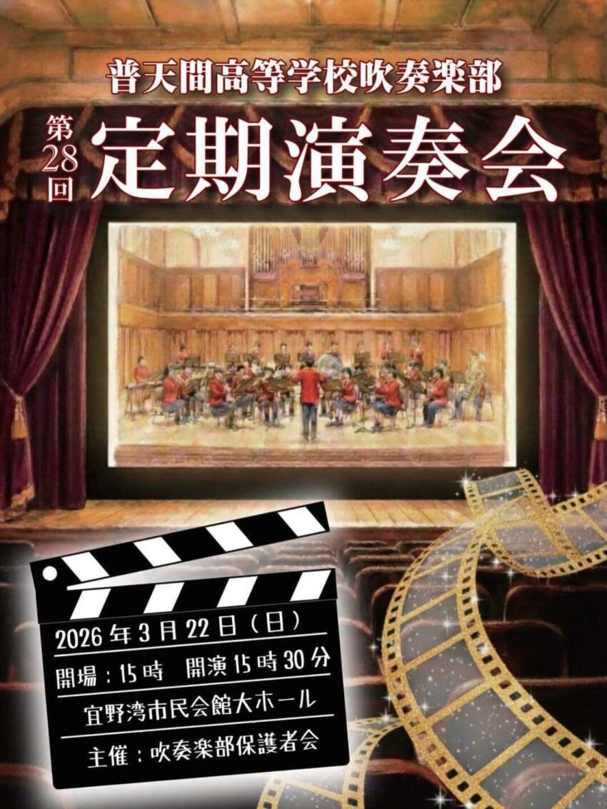 ★浦添中学校 令和7年度定期演奏会・開場:15時/開演:15時30分・会場=アイム・ユニバースてだこホール・大ホール
