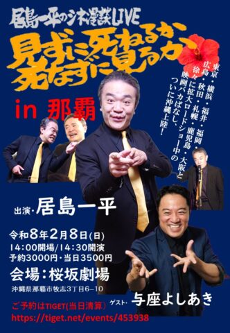 ★居島一平シネ漫談ライブ・見ずに死ねるか死なずに見るかIN那覇・開場:14時/開演:14時30分・出演=居島一平・ゲスト/与座よしあき・会場=桜坂劇場・ホールB