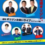 ★週刊オリジン お笑いライブ・スタート:19時30分・出演=MC:金城理恵、しんとすけ、やんびー、武藤徹太郎(もんぶらん)、ながりょー、福T(出演者は変更の可能性あり)・会場=ジュンク堂書店那覇店 B1Fイベント会場