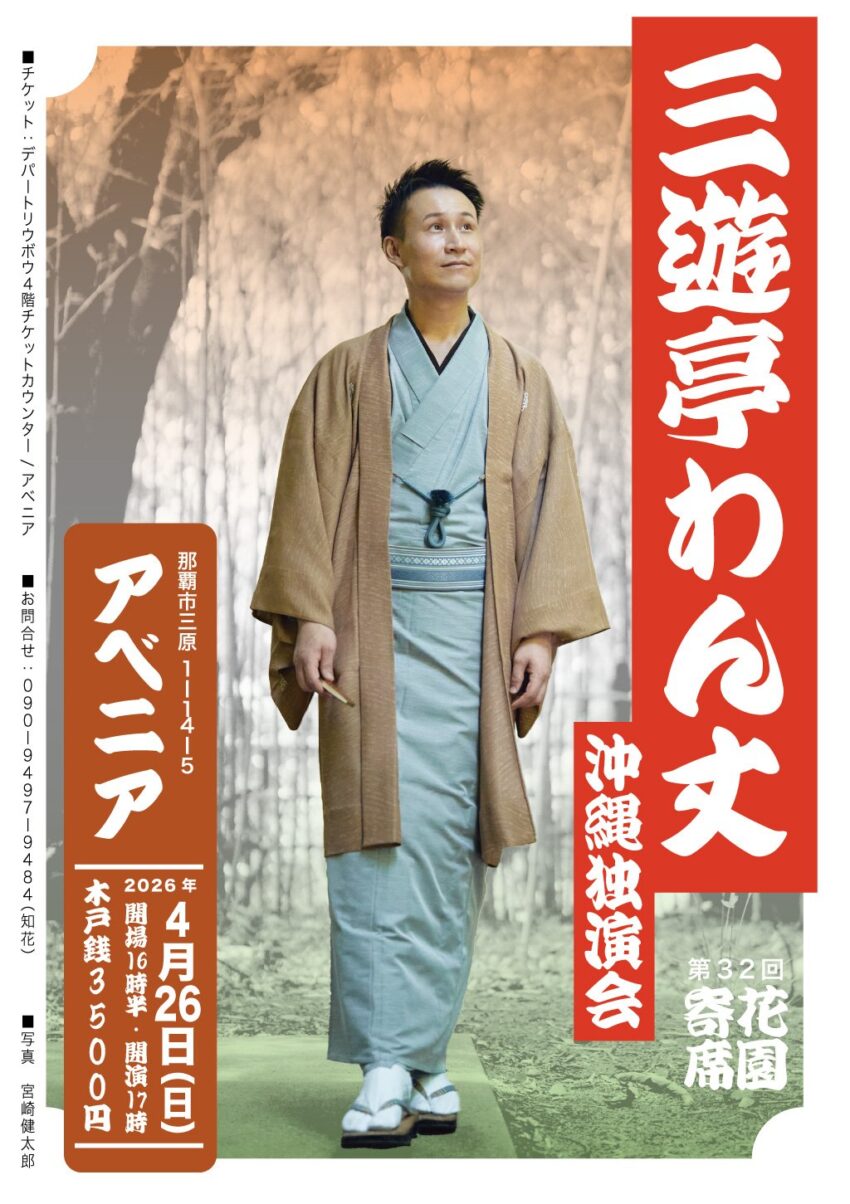 ★よしもと琉球コメディ「かなさん!組踊!」・開場:14時/開演:15時・出演=オリオンリーグ、ありんくりん、ハイビスカスパーティー、初恋クロマニヨン、新本奨、カシスオレンジ、ポっポ、島袋忍、さきはまっくす、川満香多、立方:仲嶺良盛、地方:仲嶺良盛、立方:知花令磨・会場=金武町中央公民館 大ホール