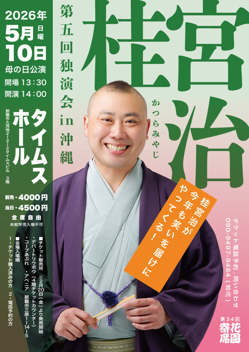 ★オリジンお笑いライブ・喜笑転決・開場:18時30分/開演:19時・出演=スズカーサーキット、めーばーカリー、ノーブレーキ、おばあちゃんありがとう、ながりょー、TOMOKI (リーチ)、Kジャージ、こきざみインディアン、あつきにいにい、すっとこどっこい、しんとすけ、糖と汗、わに先生、もんぶらん、いってきます、やんぴー、びんちょうたん・会場=豊見城中央公民館中ホール