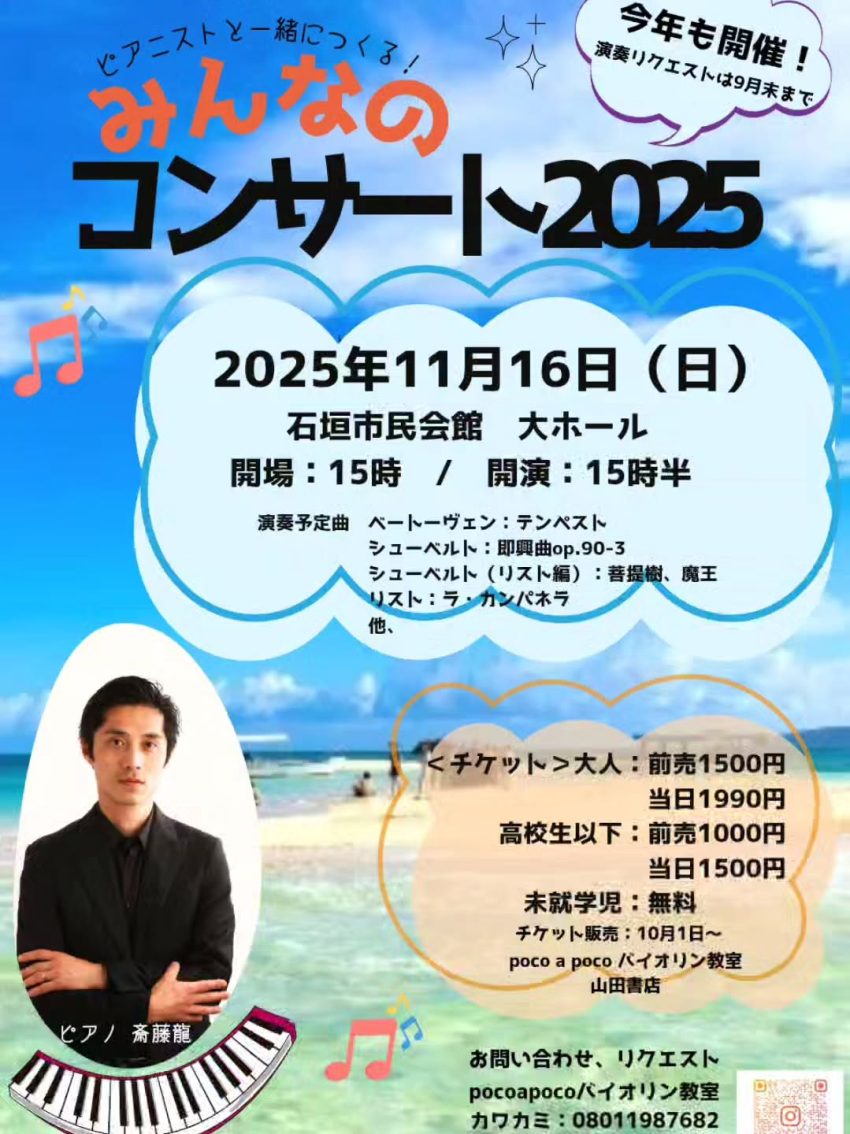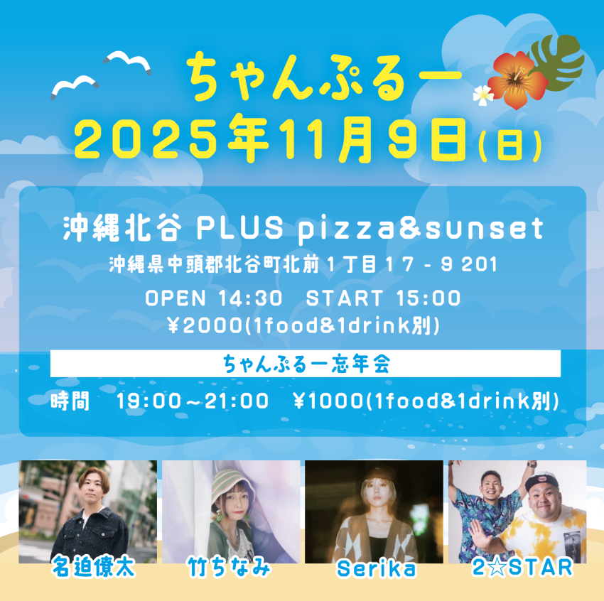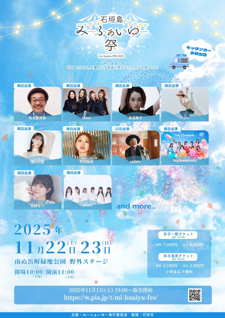 ★下地フェスティバル2025・14時30分:START・出演=SPECIAL GUEST:CHEHON、CHOUJI、775、808、LIFESTYLE・宮古島アーティスト:Ncaan BAND、SMILE ONE SOUND、塩崎 なおこ、与那覇のヨンシー、Te Mahana・会場=与那覇前浜ビーチ 前浜エスカーサ( 宮古島市下地与那覇1199番)