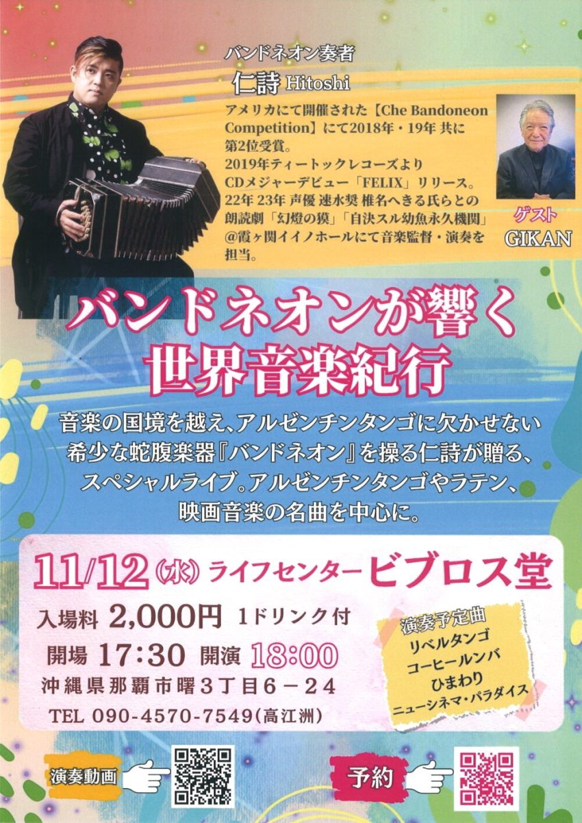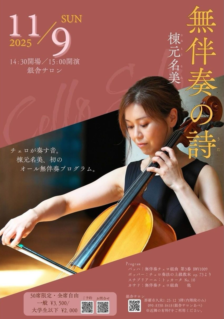 ★音楽でつながる・ヴァイオリン・ヴィオラ・声楽のコンサート・開場:17時/開演:17時30分・出演=Okinawa … Canon(ヴァイオリン)、Hungary… Asahi(ヴィオラ)、Fukuoka … Junko(声楽)・会場=会場=ライフセンター ビブロス堂(那覇市曙 3-6-24)
