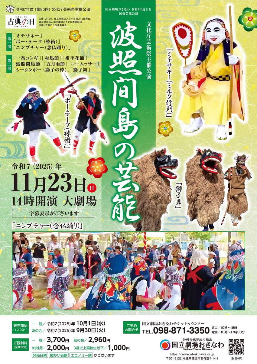 ★伝承の力 古典の現在XⅡ~地歌箏曲と琉球古典芸能の競演~・開場:13時30分/開演:14時・出演=藤本昭子、岡村慎太郎、菊央雄司、池間北斗、森田夏子、菊央雄司、阿嘉修、嘉数道彦、大浜暢明、玉城匠、上原崇弘、仲村逸夫、棚原健太華、入嵩西諭 、久志大樹、岡村慎太郎、菊珠三奈子、藤原道山、佐辺良和・会場=国立劇場おきなわ・大劇場