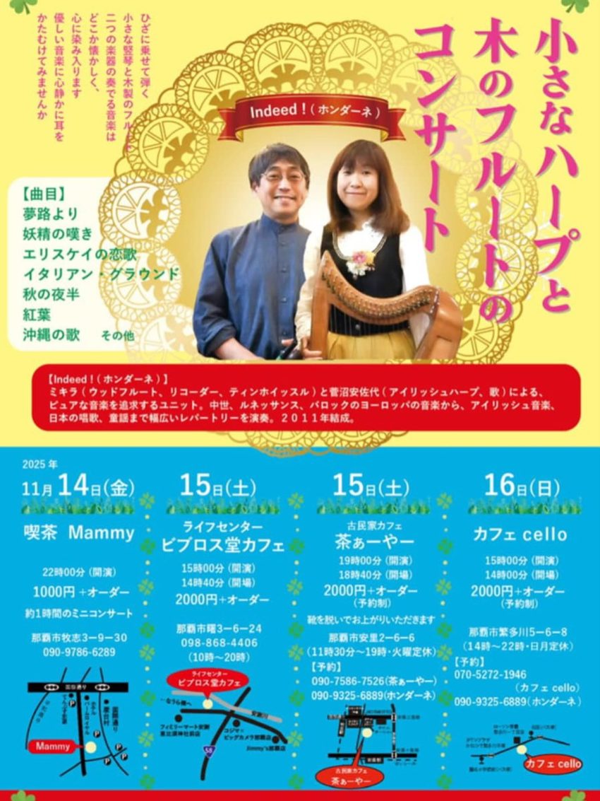 ★ライリッシュオカリナ連盟沖縄那覇支部・おとだまコンサート・開場:13時/開演:13時30分・会場=シャボン玉石鹸くくる糸満