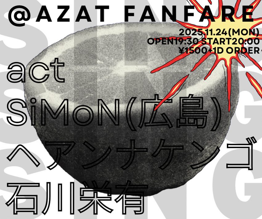★@AZAT FANFARE・開場:19時30分/開演:20時・act:SiMON(広島)、ヘアンナケンゴ、石川栄有・会場=AZAT FANFARE