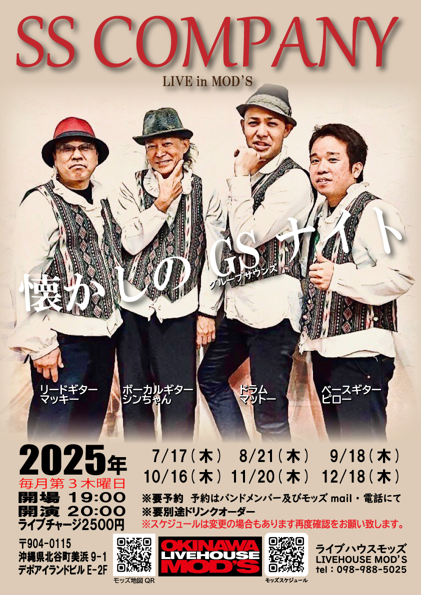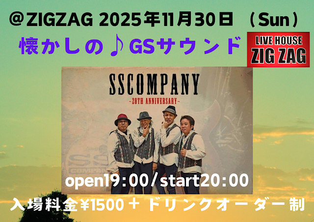 ★懐かしのGSサウンド SSカンパニーライブ・開場:19時/開演:20時・会場=ライブハウスZIGZAG
