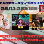★アコースティックライブだよ!・開場:19時/開演:19時30分・出演=aile、朝蛍、Fancy Collection・会場=ライブハウスZIGZAG
