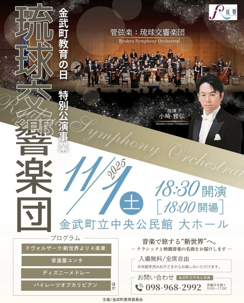 ★金武町教育の日 特別公演事業・琉球交響楽団・開場:18時/開演:18時30分・会場=金武町立中央公民館大ホール